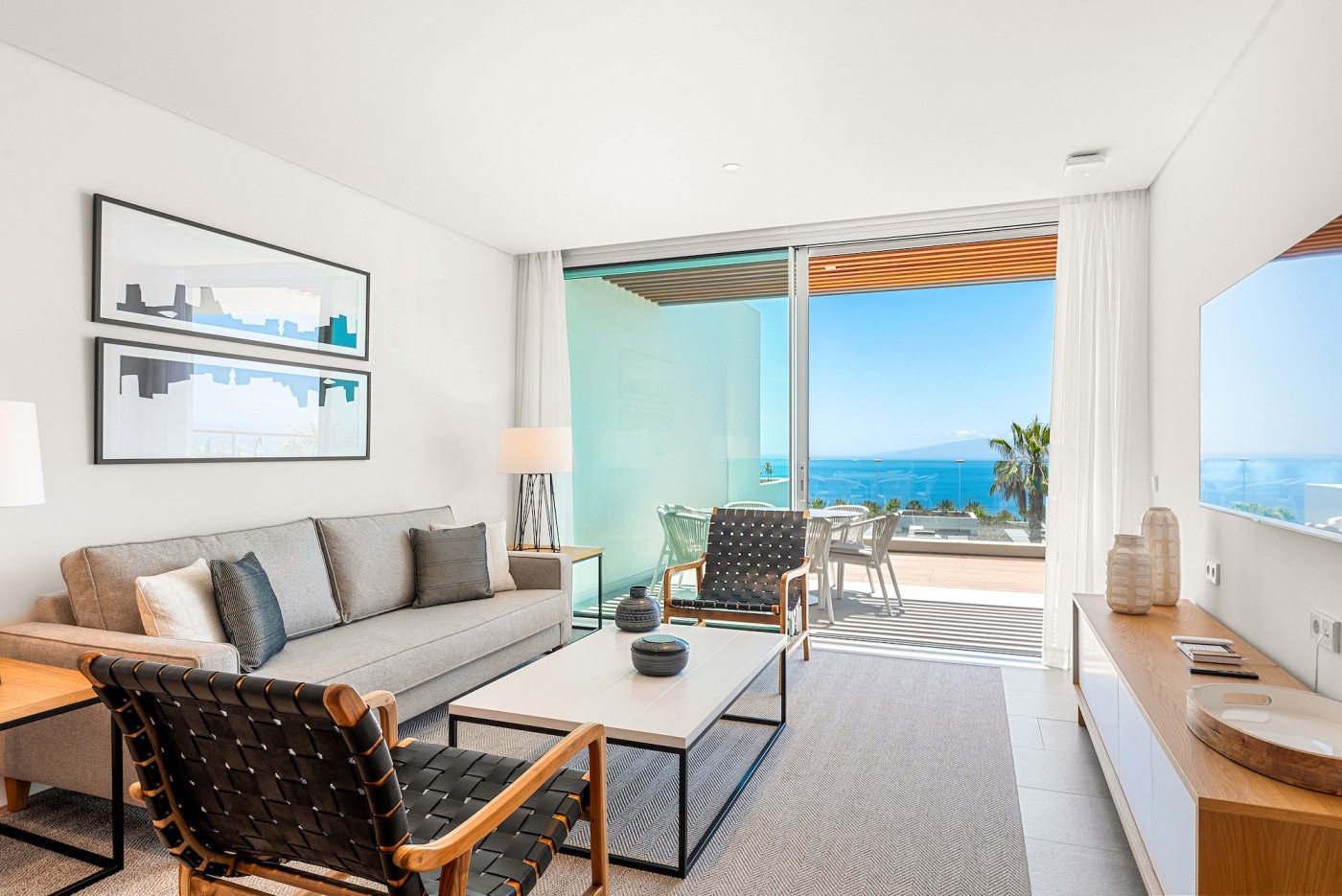 Dit luxe appartement op de eerste verdieping valt op door zijn functionele en elegante ontwerp, met een naar het westen gerichte terras dat naadloos aansluit op het interieur via grote schuifglazen deuren. Met meer dan 85 m² binnen-buitenruimte beschikt het over twee ruime slaapkamers, beide met een eigen badkamer, waarbij de hoofdsuite direct uitkomt op het terras met een spectaculair uitzicht op zee. Volledig gemeubileerd met hoogwaardige materialen en merken, biedt het een verfijnde en duurzame sfeer. Beheer en onderhoud worden verzorgd door het resortteam, terwijl de woning parkeerplaats, een berging en toegang tot exclusieve voordelen voor eigenaren omvat.